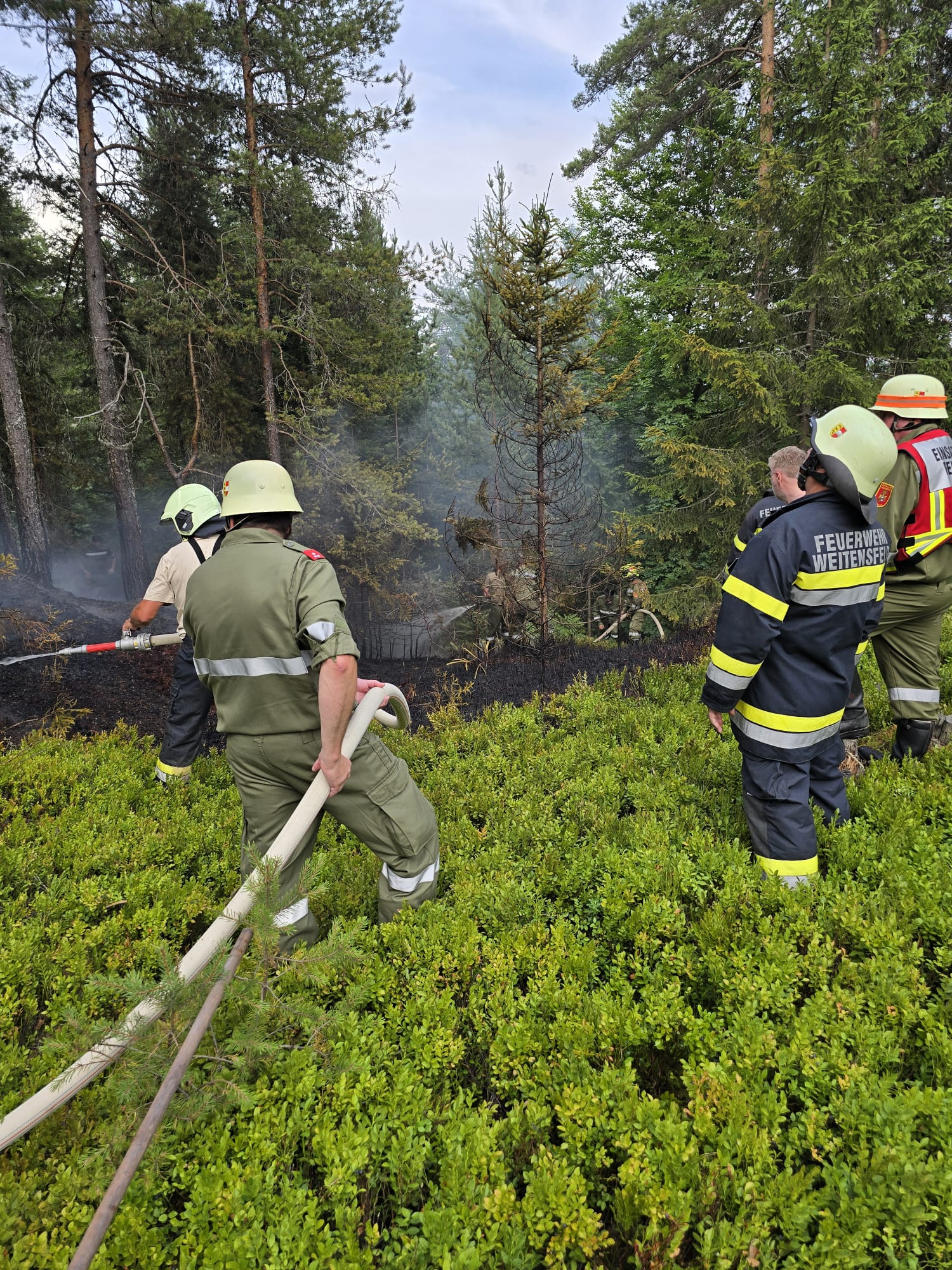 Um circa 18 Uhr wurden die Feuerwehren Weitensfeld und Pisweg zu diesem Einsatz alarmiert. Nach Erkundung der Einsatzleitung stellte sich heraus, dass einige Hektar eines Waldstückes vermutlich durch einen Blitzschlag zu brennen begonnen hatten.