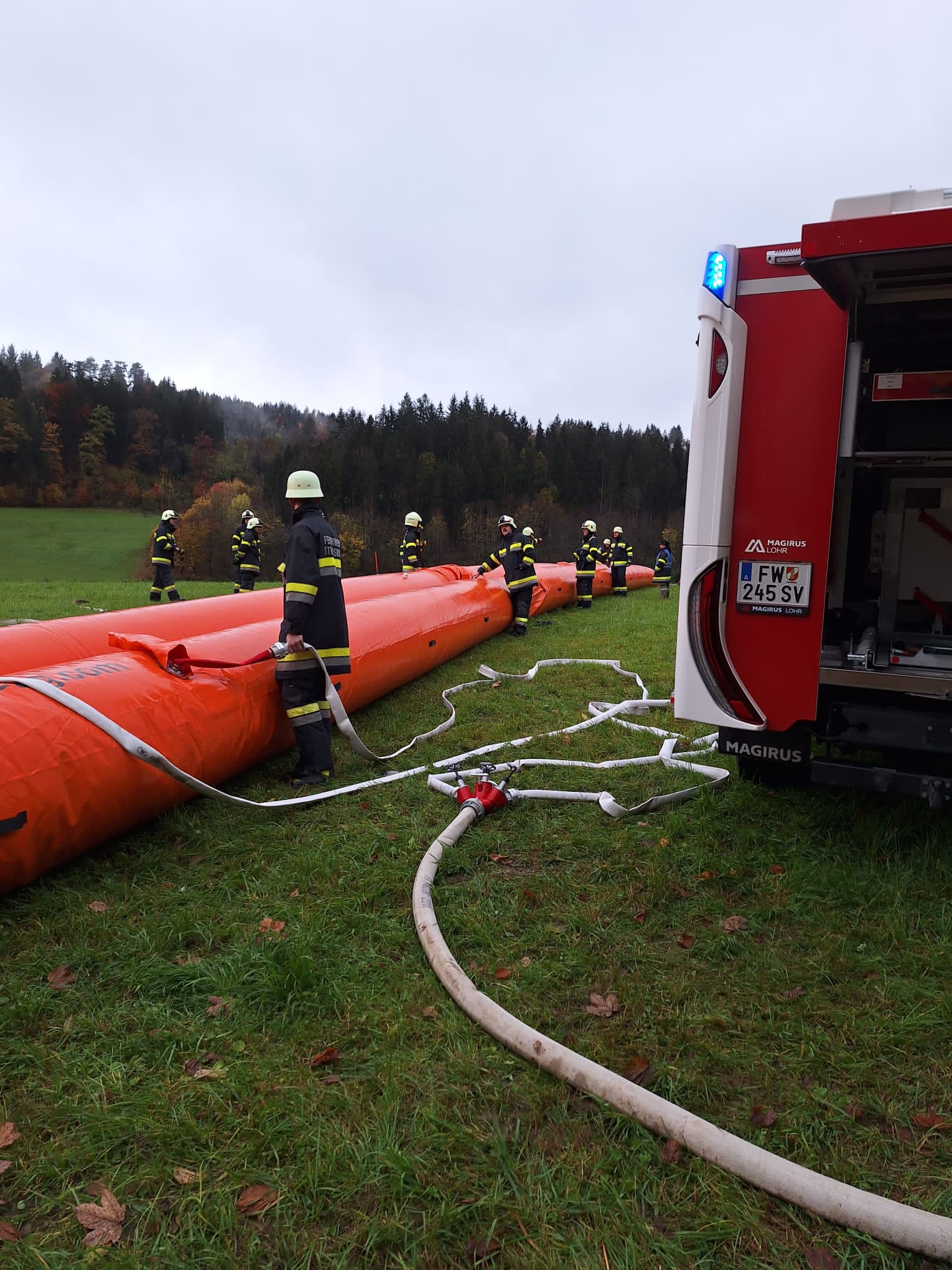 Unsere Aufgabe war es gemeinsam mit anderen Feuerwehren des Bezirkes den Auf- und Abbau des mobilen Hochwasserschutzes aus dem Bezirkskatastrophenlager Althofen durchzuführen. Im Anschluss daran erfolgte noch eine kurze Schulung durch unseren Bezirksfeuerwehrkommandanten OBR Friedrich MONAI zum Thema „Mobiler Hochwasserschutz“.