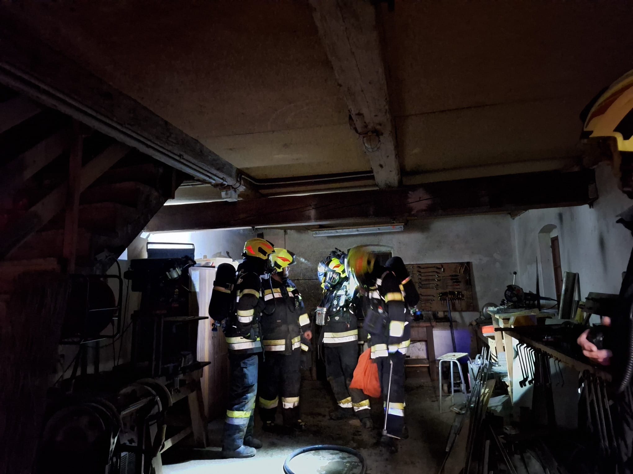 Unverzüglich rückten wir mit beiden Fahrzeugen aus. Nach Erkundung durch Übungseinsatzlleiter HLM Kilian BUCHATSCHEK wurde sofort ein Atemschutztrupp für die Personenrettung sowie für einen Innenangriff in Einsatz gestellt. Weiters wurde von der restlichen Besatzung des TLFA 2000-200 Gurk ein umfassender Außenangriff aufgebaut.