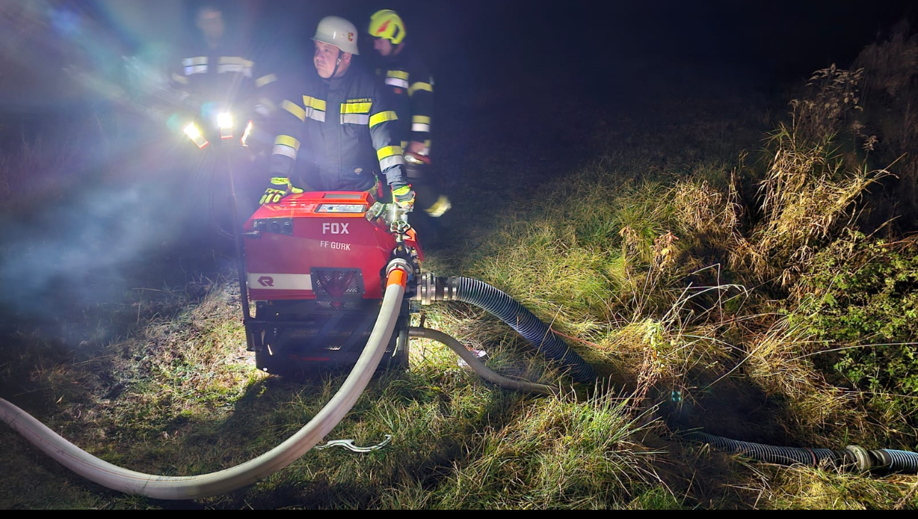 Die Besatzung des LFA Gurk stellte in der Zwischenzeit die Wasserversorgung mittels Zubringleitung vom Gurkfluss sicher.
