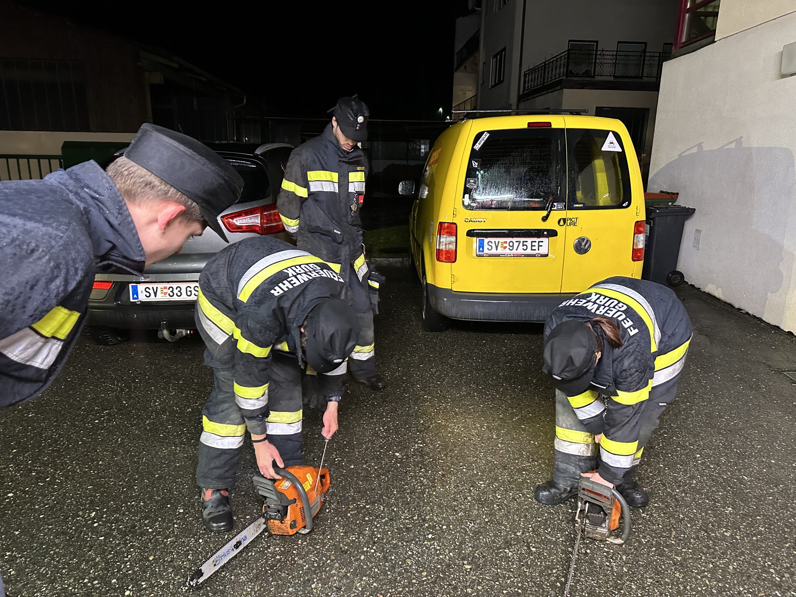 Ziel war es sämtliche Geräte auf ihre Funktion zu überprüfen und sie für den Winter vorzubereiten. Zudem wurden an den Fahrzeugen Schneeketten angelegt.